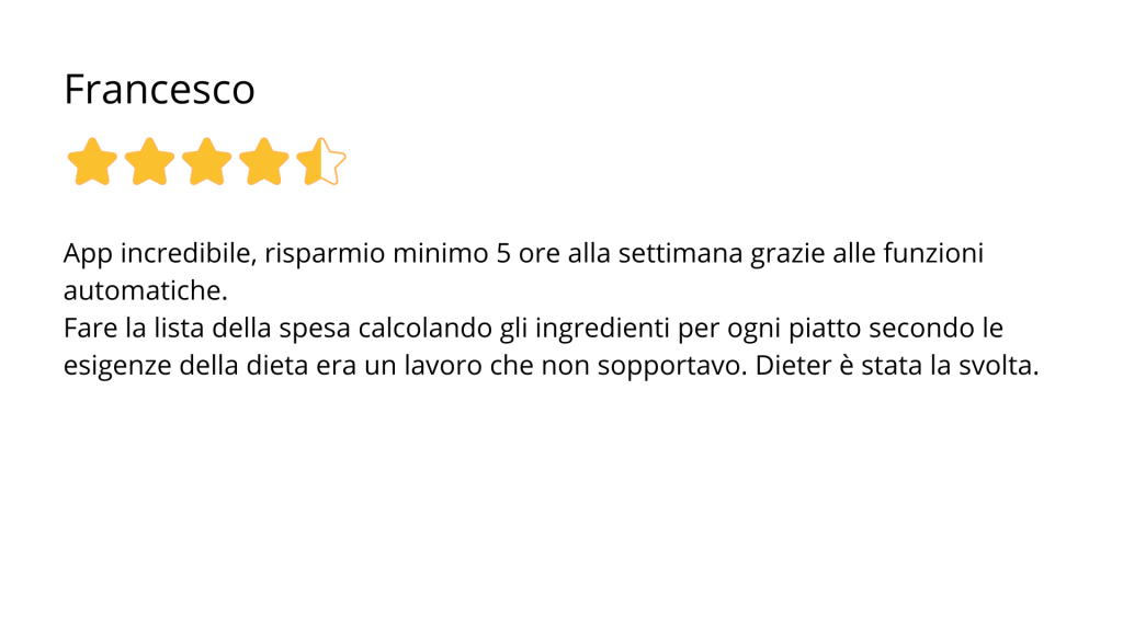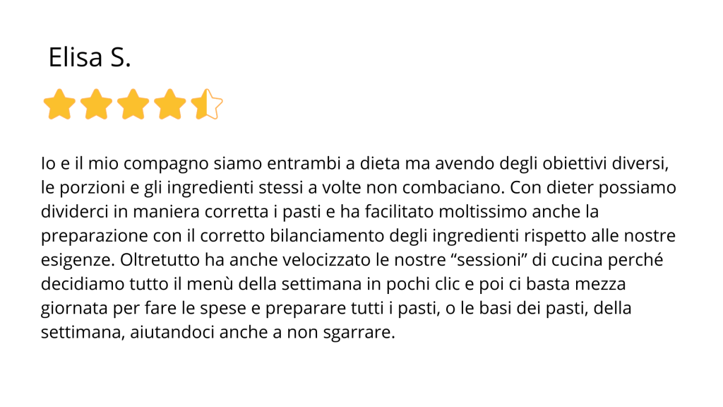 È domenica pomeriggio e, per via dei mille impegni del weekend, non hai ancora pensato ai pasti della settimana. Decidi di provare Dieter: